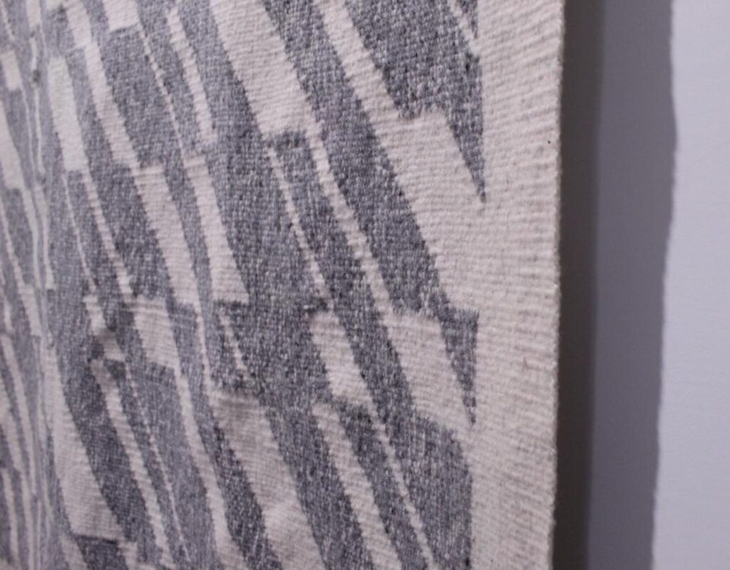 Las obras revelan una tensión entre lo manual y lo conceptual, entre el oficio heredado y la experimentación contemporánea. En cada pieza, el hilo se convierte en una extensión del pensamiento: traza, une, repara, sostiene. El textil deja de ser superficie decorativa para convertirse en escritura; una escritura hecha de materia, tiempo y silencio.